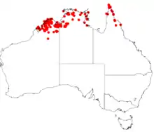 - Bryan A Barlow (1993). "Conspectus of the genera Amylotheca, Cyne, Decaisnina, Lampas, Lepeostegeres, and Loxanthera (Loranthaceae)". Blumea. 38 (1): 77, fig. 3 (map). ISSN 0006-5196. Wikidata Q96032673.