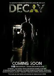 Decay is a 2012 horror film by Luke Thompson (of the University of Manchester), set at the Large Hadron Collider in Switzerland.[2][3] The movie was created on a budget of $3,225 and was filmed over a period of two years by Thompson and his fellow physicists.[4] The film was released online for free under the Creative Commons CC BY-NC license, shareable and remixable.[5][6] Decay was premiered on 29 November 2012 and centres on the idea of the Large Hadron Collider transforming scientists into zombies.[7]