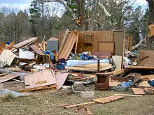 One of these thunderstorms also spawned a short lived tornado near Lavaca, Arkansas on December 19. The tornado was rated as an EF1 on the Enhanced Fujita scale,[17] after damaging various trees, homes, and blowing roofs off of structures.[19] A second EF1 tornado was reported 2 mi (3.2 km) west of Sheridan, Arkansas the following day, destroying a mobile home.[20]