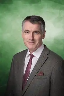 Prior to his election, Kearney served as National Chairman of Sinn Féin, in which capacity he apologised "for all the lives lost during the Troubles".[3] His brother, Ciarán Kearney, husband of Jane (née Donaldson), is the son-in-law of the late Provisional Irish Republican Army volunteer and Sinn Féin politician Denis Donaldson, who was assassinated near Glenties in County Donegal after having been exposed as a British agent.[4]