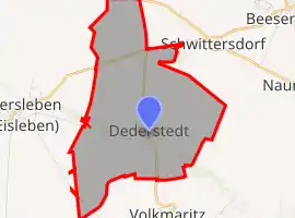 Dederstedt is a village and a former municipality in the Mansfeld-Südharz district, Saxony-Anhalt, Germany. On 1 September 2010, it became part of the municipality Seegebiet Mansfelder Land.
