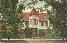 From 1916 to 1959 the high school was located at 70 Whiting Avenue.[24][25][23] Governor Calvin Coolidge took part in the dedication ceremony[25] on March 31, 1917.[23] Students first occupied the school in the spring of 1916.[23] It was three stories tall, plus a basement, and was built of water-struck brick and featured terra cotta trimming.[23] It later served as the Dedham Middle School.[23]