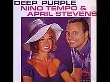 Another brother-and-sister team, Donny and Marie Osmond, revived "Deep Purple" with a note-for-note cover version of Tempo and Stevens's recording in 1975[12] and took it into the Top 20 on the U.S. and Canadian pop charts. It peaked at number 14 in March 1976[13] on the Billboard Hot 100, with Marie intoning the balmy lyrics during the break as April Stevens had done in the version with Nino Tempo. The song that succeeded the Tempo/Stevens version of "Deep Purple" at number one on the Billboard chart, "I'm Leaving It Up To You" by Dale & Grace, had also been a hit over a decade later in a cover version by Donny & Marie (in 1974).