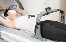 Free-breathing breath-hold, also known as real-time position management (RPM) DIBH utilises an infra-red camera and markers placed on the patient to track movement of their chest, and their breathing.[8] Another device for DIBH is known as Abches that monitors the breathing pattern.[9] With the Abches, a patient is instructed to hold the breath at a specified breathing position by viewing a breathing level indicator, thereby reproducing an identical breath-hold position.[10]
