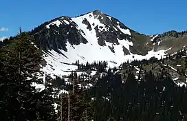 Dege Peak is a 7,006-foot (2,135 m) summit located in Pierce County of Washington state.[3] It is part of the Sourdough Mountains in Mount Rainier National Park. It was named in 1932 for James Henry Dege (born 1868), a prominent Tacoma businessman and Captain of the First Regiment National Guard of Washington.[4] His mother was a descendant of President Zachary Taylor.