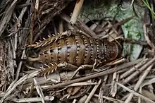 Since the introduction of mammalian predators many of New Zealand's endemic fauna has been severely impacted, and D.carinata is no exception. It has been identified in the past that cats, rodents and weka are the main reasons for the decline of this species in its current distribution.[4][13] On Herekopare, Kundy and Whenua Hou/Codfish Island weka, cats and rodents have been removed.[11][14] However, weka have subsequently been reintroduced to Herekopare Island by muttonbirders and currently still pose a threat to D. carinata.[14] In addition, weka are also present on Tihaka/Pig Island where their colony have been protected since 1965.[2] Furthermore, previous survey's conducted by the Wildlife Service reveal the extent to how much cats were impacting D.carinata on Herekopare Island. When analyzing the stomach contents of cats wētā remains were found in 14 individuals, of which 7 contained more than 10 wētā, and 2 contained more than 100.[15] Subsequently, a decision was made by the Wildlife Service in 1970 to eradicate cats from the island as they were also impacting on birdlife.[15] Native lizards have also been noted as being probable natural predators such as small-eared skinks (Oligosoma stenotis) and Raukawa gecko (Hoplodactylus maculatus), which both have been observed during past survey's for D.carinata on Tihaka/Pig Island.[2]