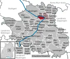 No other villages except for the small town Deizisau belong to the Deizisau municipality.[3] Inside the boundary of the municipality lies the abandoned village Kersch.