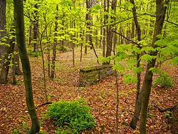 ![]() Isolated stone wall in the woods in Delaware Township, within the Delaware Water Gap National Recreation Area | |