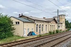 Delitzsch oberer Bahnhof (Delitzsch upper station) is an intermediate station on the double-tracked and electrified Halle–Cottbus railway and one of the two passenger station serving the town of Delitzsch in the Nordsachsen district of Germany. It is currently only a halt with two side platforms.