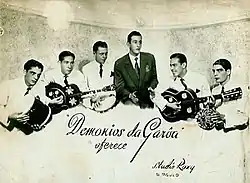 Demônios da Garoa is a Brazilian samba band. It was formed in São Paulo in 1943, its members drawing influences from a variety of cultural sources to develop their own characteristic style. In 1949, they met Adoniran Barbosa, one of the most important composers of música popular brasileira or MPB. Together, they personified current socio-cultural trends. In 1994, it was recognized as the oldest performing group in Brazil by Guinness World Records.