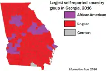 About 800,000 people in Georgia reported having Irish ancestry.[16] Germans are the fifth largest ancestry in Georgia.[17] Other European ancestries in Georgia are Italian, French, Polish and Dutch.[18][19]
