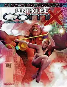 - Strnad, Jan (w). "Denz" Penthouse Comix v2, 15: 4–13 (September 1996)