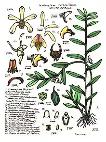 | Illustration of Dendrobium pruinosum by Lewis Roberts | |