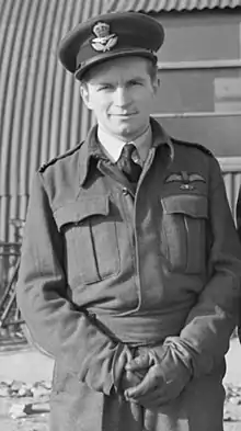 He was promoted to acting squadron leader in September 1942 and given command of No. 181 Squadron, who were operating the Hawker Typhoon in the fighter-bomber role from RAF Duxford. With another promotion to acting wing commander he took command of No. 121 Wing from June 1943 for four months, and was awarded the Distinguished Service Order.[4] In October 1943 he developed problems with his eyesight which saw him removed from operational flying and he filled a number of staff appointments until the end of the war.