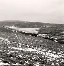 Denshaw did not experience the same rate of urbanisation and industrialisation as its surrounding settlements during the Industrial Revolution, and it did not become a mill town or a centre of the local cotton mill boom as did nearby Rochdale, Milnrow and Oldham.[7] However, Denshaw Vale was a calico printing factory which was "an important concern that employed a workforce of 150" during the 19th century.[8] Furthermore, Denshaw was chosen as the site of a reservoir which local mills were to contribute monies and thereby use;[9] In 1828, Rackenden Deign Reservoir was built by Denshaw to provide for 24 watermills.[10] In 1818 an Oddfellows Lodge was erected in the village.[11] In 1887, Denshaw was documented having a population of 1,279.[12]