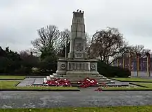 There is one main war memorial, or cenotaph, in Denton, located in Victoria Park. This memorial commemorates people from Denton and Haughton who served in two world wars. The names on the war memorial were collected from their relatives who wrote to the council with details of their loved ones who served in either war. The war memorial was unveiled on 23 July 1921. Figures from the Denton section of the Tameside council website, state that 3,500 Denton men served in the Great War (1914–1918), of that number, 369 people were killed.