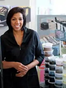 Denyse Thomasos (October 10, 1964 – July 19, 2012) was a Trinidadian-Canadian painter known for her abstract-style wall murals that conveyed themes of slavery, confinement and the story of African and Asian Diaspora. "Hybrid Nations" (2005) is one of her most notable pieces that features Thomasos' signature use of dense thatchwork patterning and architectural influence to portray images of American superjails and traditional African weavework.[1][2]