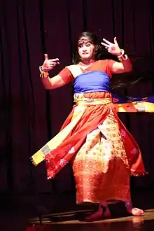 Deodhani dance (Assamese: দেওধনী নৃত্য) is a Shaman folk dance from the Indian state of Assam. It can be performed either solo or in a group. Deodhani is of Boro-kachari origin.[1] A group performance of Deodhani generally comprises of 3 or 4 women. The dance form is associated with the worship of the snake goddess Manasa or Marei/Maroi.[2] A Deodhani dance is generally performed to the accompaniment of songs sung by an oja, an Assamese traditional chorus leader, in the Darrang district.[3]