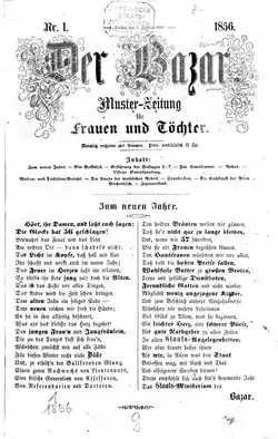 Der Bazar was launched on 10 December 1854 as a biweekly magazine.[1] The publisher was a company based in Berlin which was owned by Louis Schäfer.[1][2] However, it was Antonie von Cosmar who suggested to establish Der Bazar.[1] She was a playwright and novelist.[1] From 1857 the magazine was redesigned, its subtitle was modified and the frequency was switched to weekly.[1]