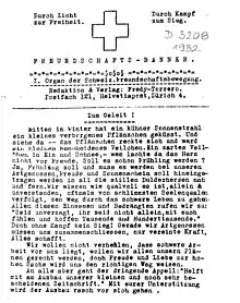Der Kreis was first published on January 1, 1932, under the original title Freundschaftsbanner (Friendship Banner) as a joint project of Laura Thoma of Zürich lesbian organization Amicitia and August Bambula of the gay men's Excentric Club Zürich. The first issue was eight pages, credited editor "Fredy-Torrero" (Laura Thoma's alias) and proclaimed two related mottos: "Through light to freedom." and "Through struggle to victory".[1] After a short pause it returned in 1933 under the changed title Schweizerisches Freundschaftsbanner. In 1937 its name changed again to Menschenrecht (Human Rights) [2] and finally to Der Kreis in 1942.