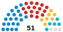 Derby City Council has 51 councillors, with three councillors representing each of the 17 separate wards within the city. It operates a 'by thirds' operation of elections, meaning that one third of the councillors (one per ward) are elected at each local election for a four-year period. This results in there being local elections three years out of every four, with a fourth fallow year.