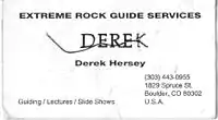 Derek Geoffrey Hersey (26 October 1956 – 28 May 1993)[1][2][3][4] was a British rock climber and for many years an active participant in the Boulder, Colorado climbing scene.