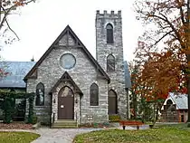 Derry Session House and Enclosure is a historic site located on the grounds of Derry Presbyterian Church at Derry Township, Dauphin County, Pennsylvania. It consists of the log Session House, built about 1732, and a glass enclosure, erected in 1929. The hewn log Session House measures 18 feet by 13 feet and is one story high and was built for a Presbyterian session. The glass and steel enclosure measures approximately 24 feet by 19 feet, 6 inches, and sits on a reinforced concrete foundation. The Enclosure, whose construction was originally funded by Milton S. Hershey, was refurbished in 1999.[3]