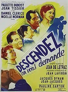 Come Down, Someone Wants You (French: Descendez, on vous demande) is a 1951 French comedy film directed by Jean Laviron and starring Noëlle Norman, Daniel Clérice and Paulette Dubost.[1] It is based on the 1946 play of the same name by Jean de Letraz.