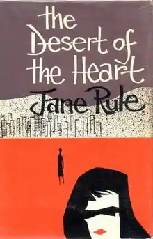 Desert of the Heart is a 1964 novel written by Jane Rule. The story was adapted into the 1985 film Desert Hearts, directed by Donna Deitch. The book was originally published in hardback by Macmillan Canada. It was one of the very few novels addressing lesbianism that was published in hardback form; most books during this period with female homosexuality as a topic were considered lesbian pulp fiction until 1969.
