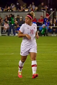 Desiree Rose Marie Scott (born 31 July 1987) is a Canadian soccer player who plays as a midfielder for National Women's Soccer League club Kansas City Current and the Canadian national team. Nicknamed "the destroyer",[2] she won gold at the 2020 Olympics in Tokyo, which was her third Olympic medal following bronze medals in 2012 in London and in 2016 in Rio.