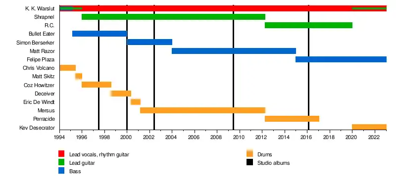 - K. K. Warslut – lead vocals, rhythm guitar (1994–present), lead guitar (1994–1996, 2020–present), bass (1994–1995)