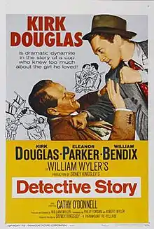Detective Story is a 1951 American film noir directed by William Wyler and starring Kirk Douglas that tells the story of one day in the lives of the various people who populate a police detective squad. The ensemble supporting cast features Eleanor Parker, William Bendix, Cathy O'Donnell, and George Macready. Both Lee Grant and Joseph Wiseman play large roles in their film debuts. The film was adapted by Robert Wyler and Philip Yordan from the 1949 play of the same name by Sidney Kingsley. It was nominated for four Academy Awards, including Academy Award for Best Director for Wyler, Best Actress for Parker, and Best Supporting Actress for Grant.