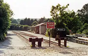 The station has two platforms although one has been disused for many years. Following developments during 2012 and 2013, funded by the European Union, there is now a raised platform, improving access on and off carriages. The two platform lines both terminate in buffer stops, and each has a headshunt forward of bi-directional cross-over points for locomotive release.