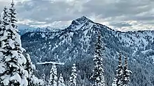 Dewey Peak is a 6,710 feet (2,050 m) summit located on the shared border of Mount Rainier National Park and William O. Douglas Wilderness. It is also on the shared border of Pierce County and Yakima County in Washington state. Dewey Peak is situated on the crest of the Cascade Range southeast of Chinook Pass, east of Seymour Peak, and northeast of Shriner Peak. Its nearest higher peak is Chinook Peak, 3.97 mi (6.39 km) to the north.[1] Dewey Peak is named in association with Dewey Lake which is set below its north aspect. Precipitation runoff from Dewey Peak drains into tributaries of the Cowlitz River and Yakima River.