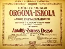 Dezso d'Antalffy (born Dezső Antalffy-Zsiross;[notes 1] 24 July 1885 – 29 April 1945), was a Hungarian organist and composer. He was one of the most significant performing artists of his time.[notes 2] He composed pieces for orchestra, chamber orchestra, choir, piano and organ which were published by Schirmer, Ricordi, Leduc, Salabert, Steingräber, Breitkopf and Universal.[1]