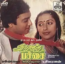 Dhoorathu Pachai is a 1987 Indian Tamil-language film directed by Manobala, starring Karthik, Suhasini and Thulasi.[1] Pc Sriram made his debut as cinematographer in this film. Its release was delayed, and is the only movie that credits PC Sriram as debutante cinematographer.
