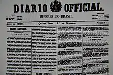 The Diário Oficial da União (literally Official Journal of the Union), abbreviated DOU, is the official journal of the federal government of Brazil. It is published since 1 October 1862 and was created via the imperial decree 1.177, of September 9 of the same year, as the Official Journal of the Empire of Brazil. [1] Its current name was adopted after Brazil became a federal republic, and the “Union” came into being as the legal personality of the new federal government. The official journal is published by the Brazilian National Press.