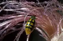 Diabrotica balteata is a species of cucumber beetle in the family Chrysomelidae known commonly as the banded cucumber beetle. It occurs in the Americas, where its distribution extends from the United States to Colombia and Venezuela in South America.[1] It is also present in Cuba.[2] It is a pest of a variety of agricultural crops.[3]