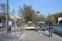 The Diamant premetro station is a station on the Brussels Metro located in the municipality of Schaerbeek in Brussels, Belgium. It was inaugurated on May 2, 1972. The station is a "premetro" station. It is thus not used by conventional subway trains, but by Brussels trams. It is one of four subway stations of the so-called Greater Ring axis built in the 1970s, which runs under the greater ring road. This underground station is currently served by tram routes 7 and 25. It offers a connection with bus routes 12, 21, 28, 29 and 79 at ground level.