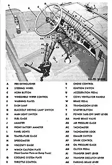 Most trucks had a front-mounted 15,000 pounds (6,800 kg) Gar Wood winch with 300 feet (91 m) of cable. The exception was dumps built before June 1944. The winch was driven off the transmission with it in neutral and was operated from inside the cab. Dump and wrecker bodies were driven off the transfer case with the transmission in gear.[11][12]