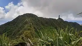 Diana's Peak is the highest point, at 818 metres (2,684 ft), on the island of Saint Helena, a British overseas territory in the South Atlantic Ocean.[1] It is of volcanic origin. The mountain and its surroundings with a total area of 81 ha were proclaimed a national park in March 1996, the first on the island.[2] It is a preserve of several endangered endemic species, including tree fern, he cabbage and black cabbage trees, and whitewood.[3] The park contains walking paths connecting the peaks - Mt. Actaeon (814m), Diana's Peak and Cuckold's Point (815m). The two shorter peaks are topped by large Norfolk pines. On the northern slopes there is a nursery for endemic species.