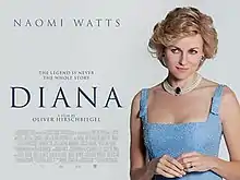 Diana is a 2013 biographical drama film, directed by Oliver Hirschbiegel, about the last two years of the life of Diana, Princess of Wales.[5] The screenplay is based on Kate Snell's 2001 book, Diana: Her Last Love, and was written by Stephen Jeffreys. British actress Naomi Watts plays the title role of Diana.