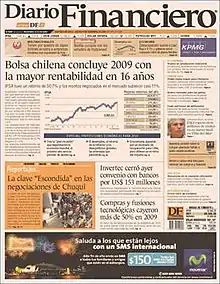 Diario Financiero is a Chilean economic newspaper founded by a group of journalists from the Economy and Business Corps of El Mercurio on October 25, 1988. It is currently controlled by the Claro Group. The tabloid has been using the orange paper that distinguishes economic media in the world since its June 19, 1989 edition, such as the Financial Times. Its main competence is the "Economy and Business" body of El Mercurio, Pulso of the Copesa and Estrategia.