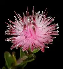 Diastella divaricata subsp. divaricata, the peninsula silkypuff, is a subspecies of Diastella that belongs to the genus Diastella and forms part of the fynbos. The plant is native to the Western Cape and is found on the Cape Peninsula south of the Silvermine Nature Reserve. The shrub is flat and grows only 50 cm high but 3 m in diameter and flowers throughout the year without an obvious peak.