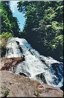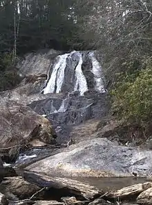 Dick's Creek Falls is a waterfall that features a 60 ft (18 m) drop of Dicks Creek into the Chattooga River. Located in the Chattahoochee National Forest, it is reached by using the Dick's Creek Trail, which is short trail (about 1.4 miles in and out) that connects to the Bartram Trail in eastern Rabun County, Georgia.