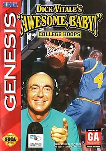 Dick Vitale's "Awesome, Baby!" College Hoops is a college basketball sports game developed and published by Time Warner Interactive for the Sega Genesis in 1994. Directed by Richard Seaborne, the game features the voice and likeness of the basketball sportscaster Dick Vitale and prominently features his quotes and catchphrases.[1] Players play as multiple college basketball teams from the United States[2] in a 3D court that automatically rotates to fit to the player's position, which was a major selling point for the game.[3]