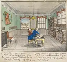 ![]() Diderich de Thurah in his office on Nyholm | |
