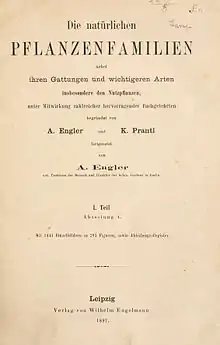 Die Natürlichen Pflanzenfamilien (1887–1915) by Adolf Engler (1844–1930) and Karl Anton Prantl is a complete revision of plant families down to generic level and often even further.[1] As such it forms part of the Engler system of plant taxonomy.