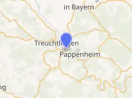Dietfurt, now part of the town of Treuchtlingen, is a German village in Middle Franconia, Bavaria. Prior to 1853 it was for centuries the location of an important post station on the road between Augsburg and Nuremberg.[1]