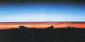 The means of discovery was that initially, a mysterious drop in the rate at which carbon dioxide (CO2) was filling the atmosphere was observed, which is charted in what is known as the "Keeling Curve".[17] This led numerous scientists to assume that the reduction was due to the lowering of Earth's temperature, and with that, a, slowdown in plant and soil respiration, indicating a deleterious impact on global agriculture from the volcanic haze layer.[2][14] However upon investigation, the reduction in the rate at which carbon dioxide filled the atmosphere did not match up with the hypothesis that plant respiration rates had declined.[18][19] Instead the advantageous anomaly was relatively firmly[20] linked to an unprecedented increase in the growth/net primary production,[21] of global plant life, resulting in the increase of the carbon sink effect of global photosynthesis.[2][14] The mechanism by which the increase in plant growth was possible, was that the 30% reduction of direct sunlight can also be expressed as an increase or "enhancement" in the amount of diffuse sunlight.[2][18][22][14]